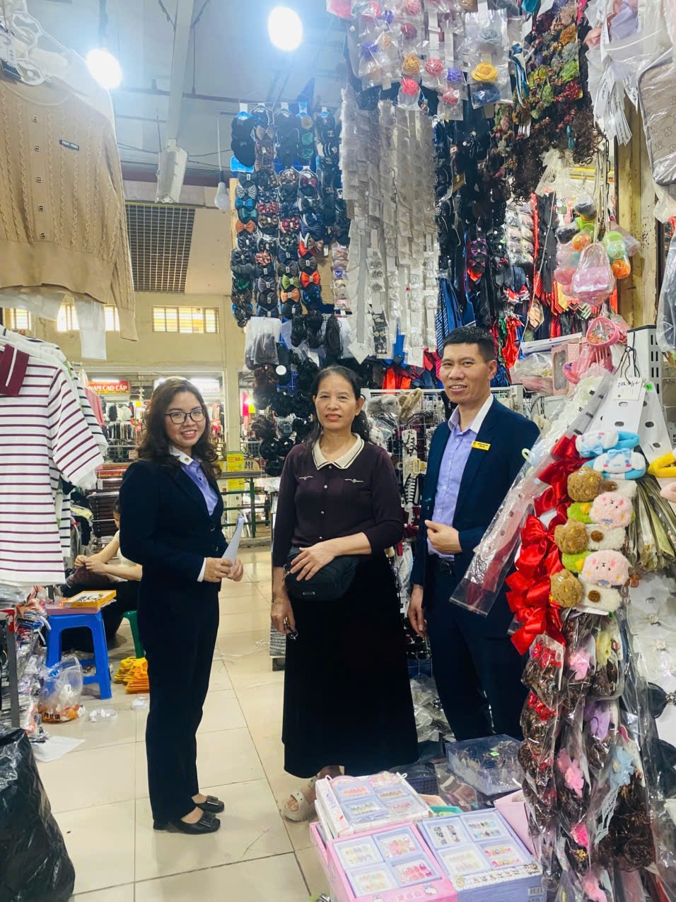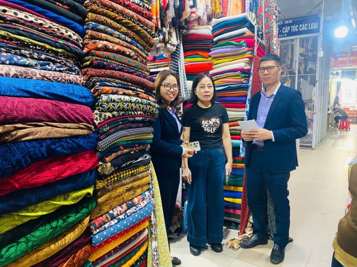 Chị Phạm Hải Yến (đứng giữa) - hộ kinh doanh tại chợ Hà Đông đang được vay vốn tại QTDND Nguyễn Trãi