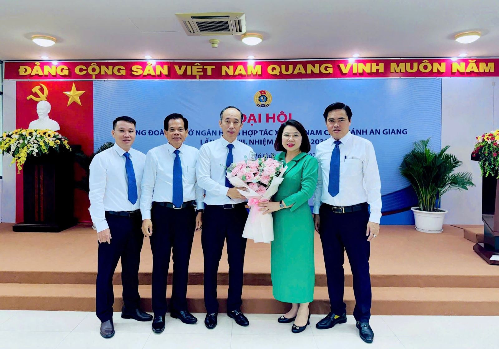 Bà Đặng Mai Phương - Thành viên HĐQT, Chủ tịch Công đoàn Co-opBank tham dự và tặng hoa chúc mừng Ban Chấp hành Công đoàn cơ sở Chi nhánh An Giang (2025-2030)