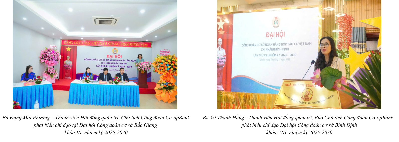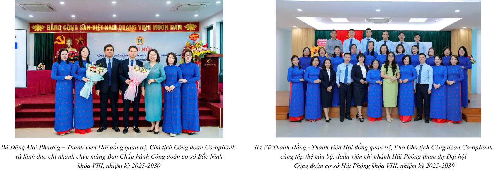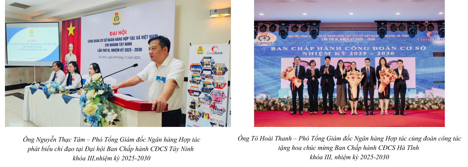 Hướng tới Đại hội Công đoàn Ngân hàng Hợp tác xã Việt Nam (Công đoàn Co-opBank) nhiệm kỳ 2025-2030, từ ngày 08/11 đến 28/11/2025, các Công đoàn cơ sở trong toàn hệ thống Ngân hàng Hợp tác xã Việt Nam triển khai tổ chức Đại hội Công đoàn cơ sở với không khí sôi nổi, đoàn kết và trách nhiệm. Đây là đợt sinh hoạt chính trị quan trọng, khẳng định vai trò, vị thế của tổ chức công đoàn trong đồng hành cùng sự phát triển của Ngân hàng Hợp tác.