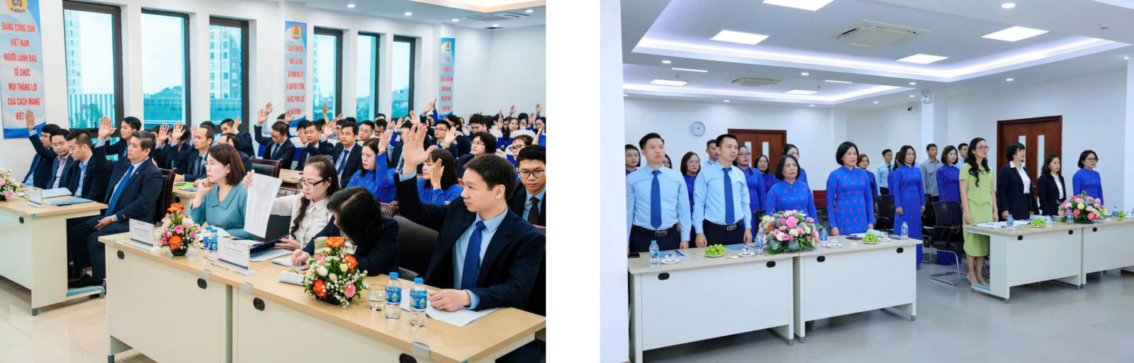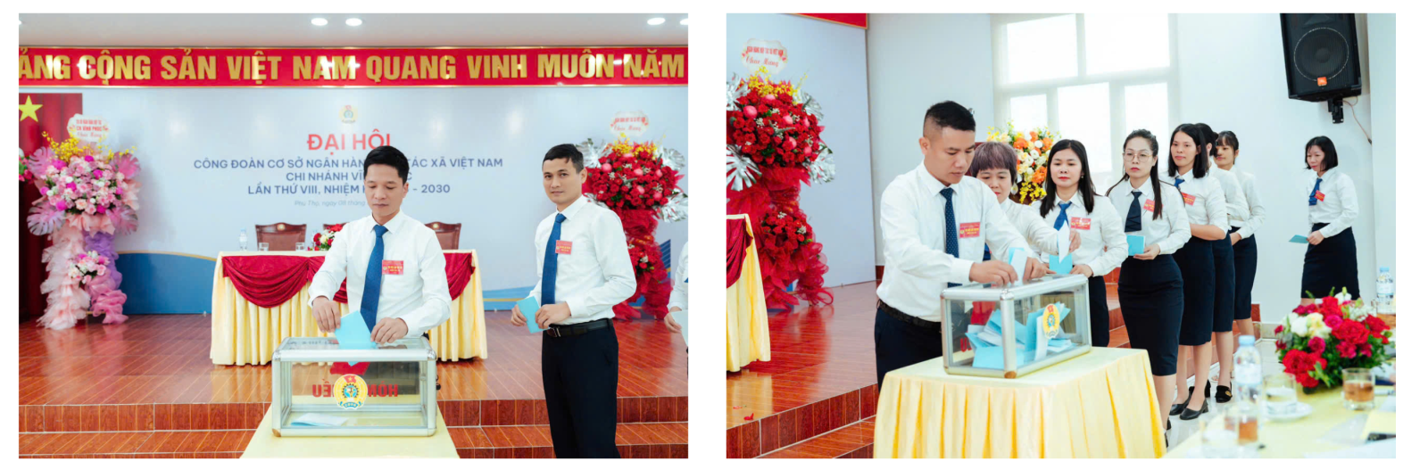 Tại Đại hội, các đại biểu đã nghe Báo cáo kết quả hoạt động của Công đoàn cơ sở giai đoạn 2023-2025, Báo cáo kiểm điểm của Ban Chấp hành, thẳng thắn nhìn nhận những kết quả đạt được và đánh giá những hạn chế, đồng thời đề ra phương hướng, nhiệm vụ trọng tâm cho nhiệm kỳ tới. Với tinh thần chủ động và sáng tạo, các Công đoàn cơ sở đã thực hiện hiệu quả công tác đại diện, chăm lo, bảo vệ quyền lợi hợp pháp, chính đáng cho người lao động; phát động nhiều phong trào thi đua sôi nổi, gắn với nhiệm vụ chuyên môn và mục tiêu phát triển của đơn vị. Các phong trào thi đua như “Giỏi việc ngân hàng, đảm việc nhà”, “Xanh - Sạch - Đẹp, Bảo đảm An toàn vệ sinh lao động”, hay gương “Người tốt, việc tốt” đã tạo sức lan tỏa mạnh mẽ trong toàn hệ thống, khuyến khích tinh thần đổi mới, sáng tạo, góp phần xây dựng môi trường làm việc văn minh, chuyên nghiệp và gắn kết. Công tác tuyên truyền, giáo dục chính trị tư tưởng, đào tạo kỹ năng nghề nghiệp, tổ chức các hoạt động văn hóa, thể thao, an sinh xã hội cũng được triển khai thường xuyên, góp phần nâng cao đời sống tinh thần cho đoàn viên, người lao động.