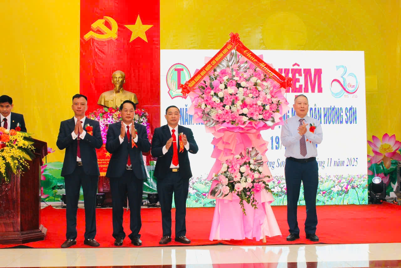 Đại diện Lãnh đạo Hiệp hội tặng hoa chúc mừng QTDND Hương SơnBảo An.
