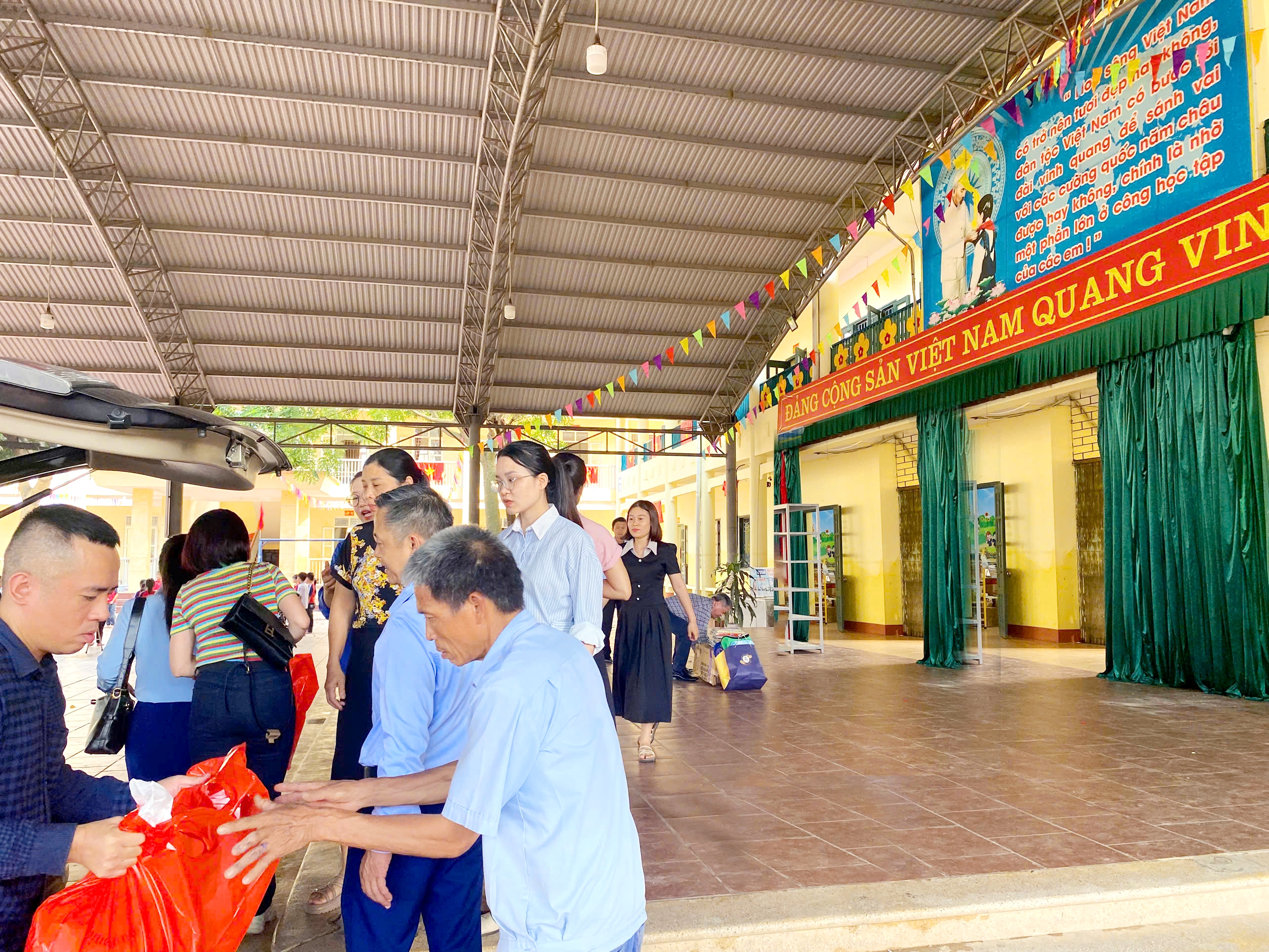 Tiếp đó, đoàn đến Trường Tiểu học Kha Sơn (xã Kha Sơn, Thái Nguyên) - nơi nước lũ đã nhấn chìm toàn bộ bàn ghế và trang thiết bị. Đại diện Hiệp hội đã trao 20 suất quà cho học sinh có hoàn cảnh đặc biệt khó khăn, chia sẻ phần nào nỗi nhọc nhằn với thầy và trò trong giai đoạn đầy thử thách.
