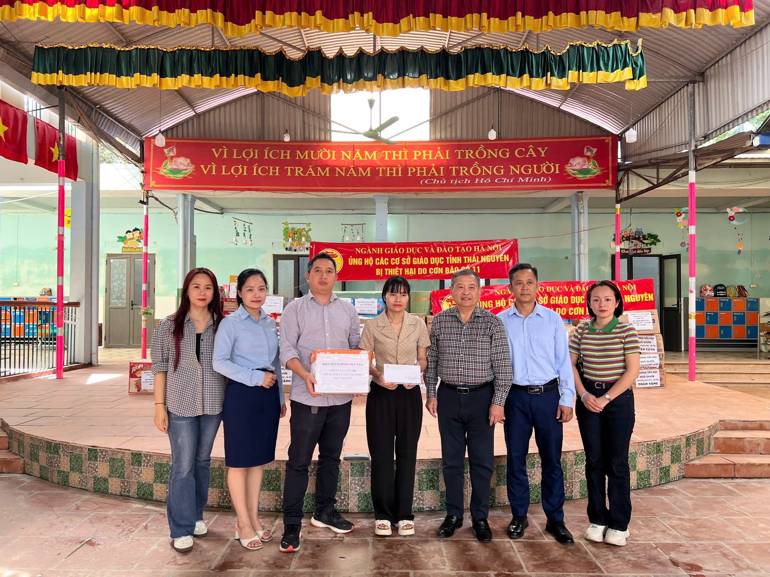 Tại Trường Mầm non Gia Sàng, nước lũ dâng cao gần hai mét, cuốn trôi toàn bộ đồ chơi, giáo cụ và trang thiết bị giảng dạy. Dù nhà trường đã nỗ lực khắc phục để sớm đón học sinh trở lại, song cơ sở vật chất vẫn còn rất thiếu thốn. Văn phòng Hiệp hội đã kịp thời trao tặng giấy A4 và một khoản hỗ trợ tài chính giúp nhà trường ổn định giảng dạy, mang lại niềm vui học tập cho các em nhỏ.