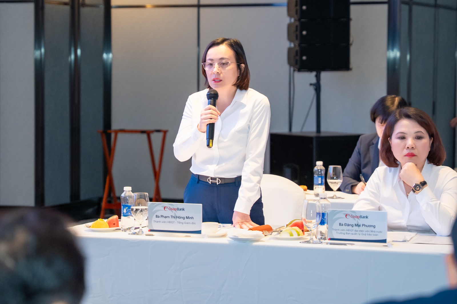 Tham dự Hội nghị có bà Phạm Thị Hồng Minh - Phó Bí thư Đảng ủy, Thành viên Hội đồng quản trị, Tổng giám đốc; các ông/bà thành viên Hội đồng quản trị, Ban Tổng giám đốc; Ban kiểm soát, Ban Quản lý Quỹ Bảo đảm an toàn hệ thống Quỹ tín dụng nhân dân (QTDND); lãnh đạo các đơn vị tại Trụ sở chính và Giám đốc một số Chi nhánh Co-opBank cùng tham dự.