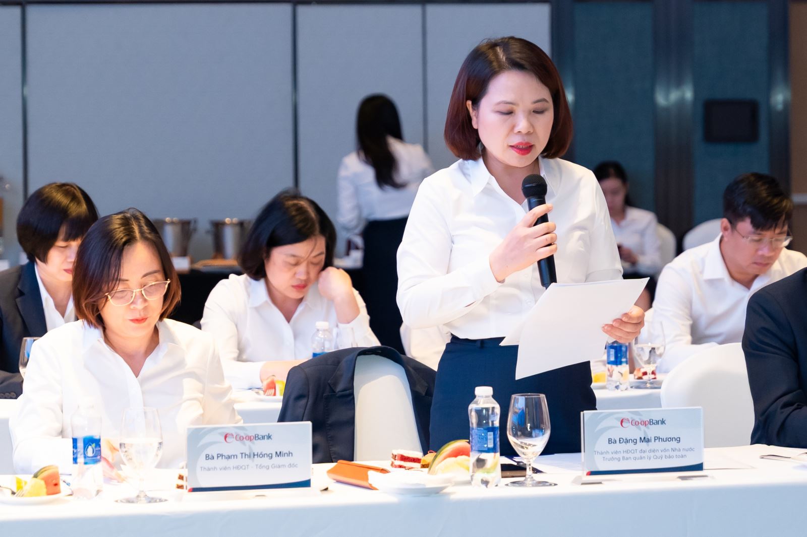 Bà Đặng Mai Phương - Thành viên Hội đồng quản trị Co-opBank phát biểu tại Hội nghị