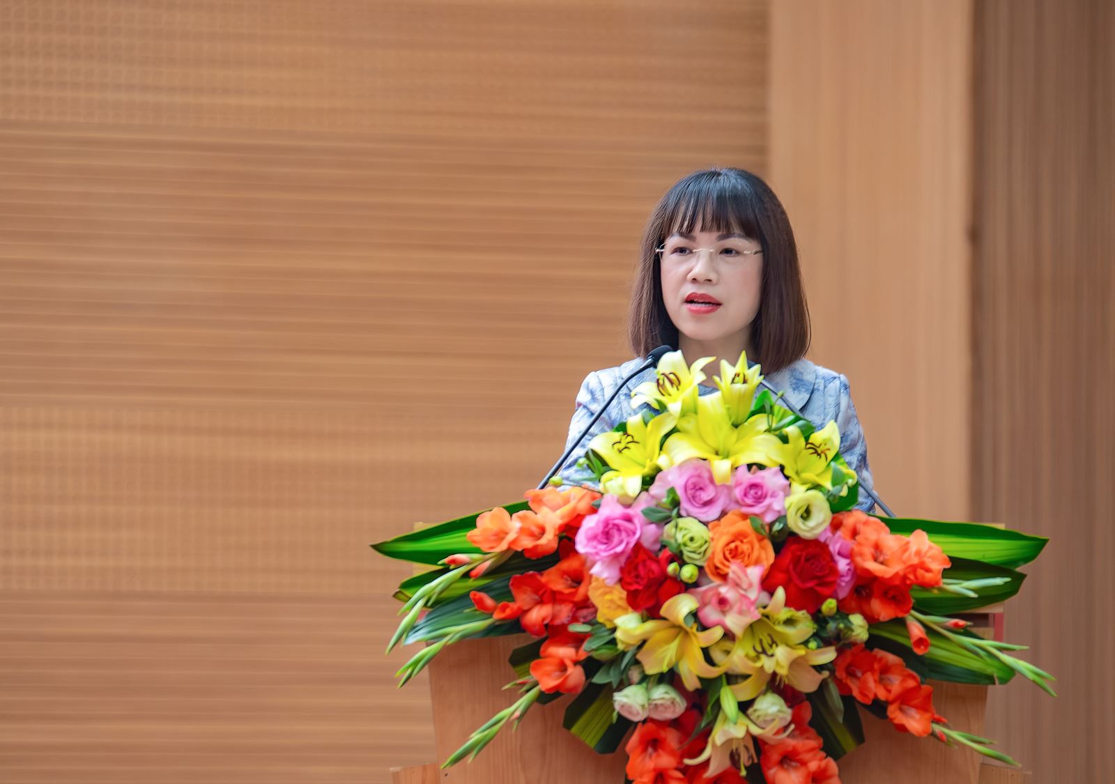 Bà Trương Thu Hòa - Giám đốc NHNN Khu vực 4 phát biểu chỉ đạo tại Hội nghị