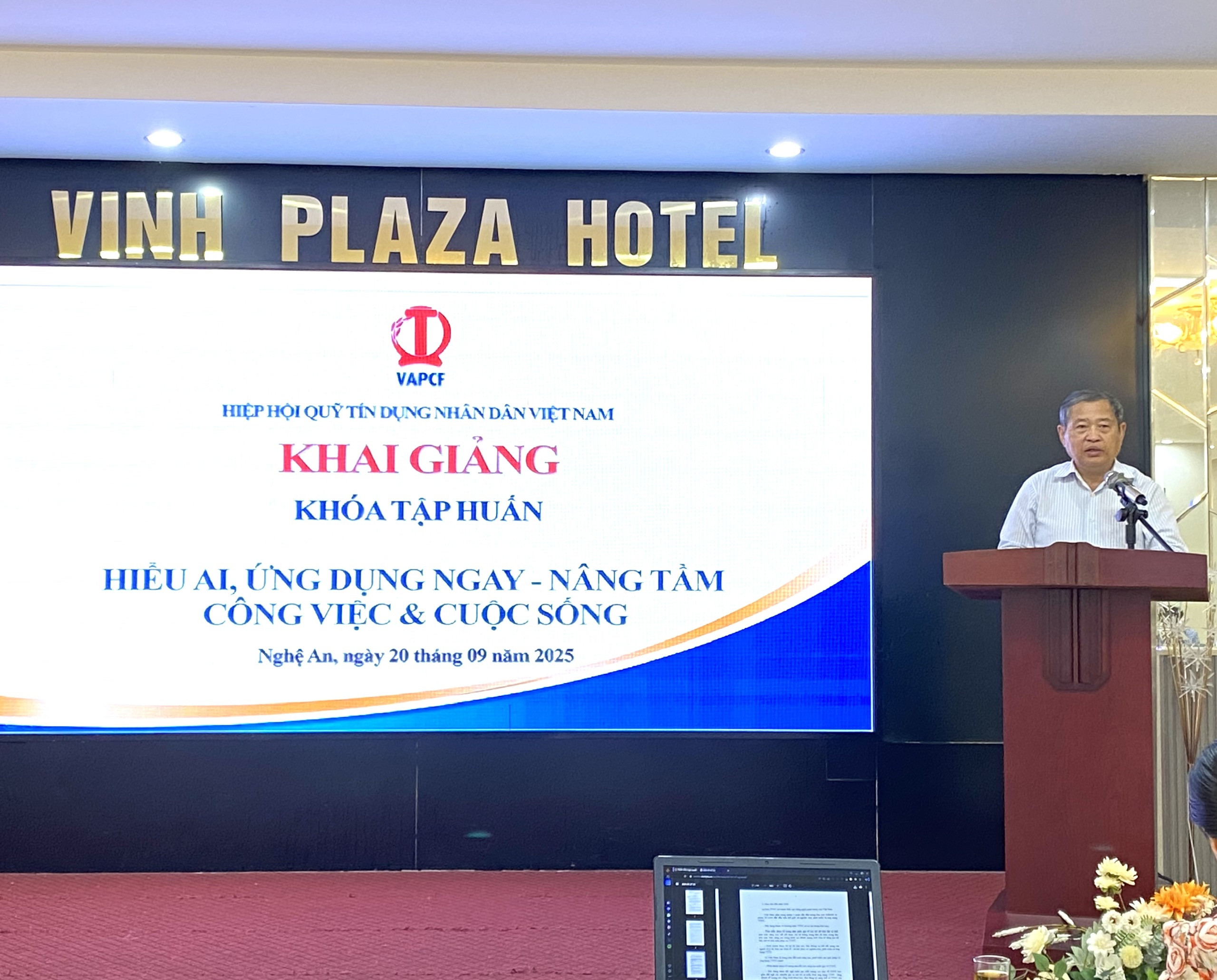 Trong hai ngày 20 và 21/9/2025, Hiệp hội Quỹ tín dụng nhân dân (QTDND) Việt Nam đã tổ chức thành công 02 lớp tập huấn với chủ đề “Hiểu AI, ứng dụng ngay - Nâng tầm công việc & cuộc sống” tại thành phố Vinh, tỉnh Nghệ An. Chương trình diễn ra đồng thời tại Khách sạn Vinh Plaza và Khách sạn Hữu Nghị, quy tụ 155 học viên là cán bộ đến từ các QTDND trên địa bàn Nghệ An và Thanh Hóa. Đây không chỉ là khóa đào tạo kỹ năng nghiệp vụ, mà còn là bước khởi đầu quan trọng trên hành trình chuyển đổi số của hệ thống QTDND, đáp ứng yêu cầu phát triển trong thời đại công nghệ số.