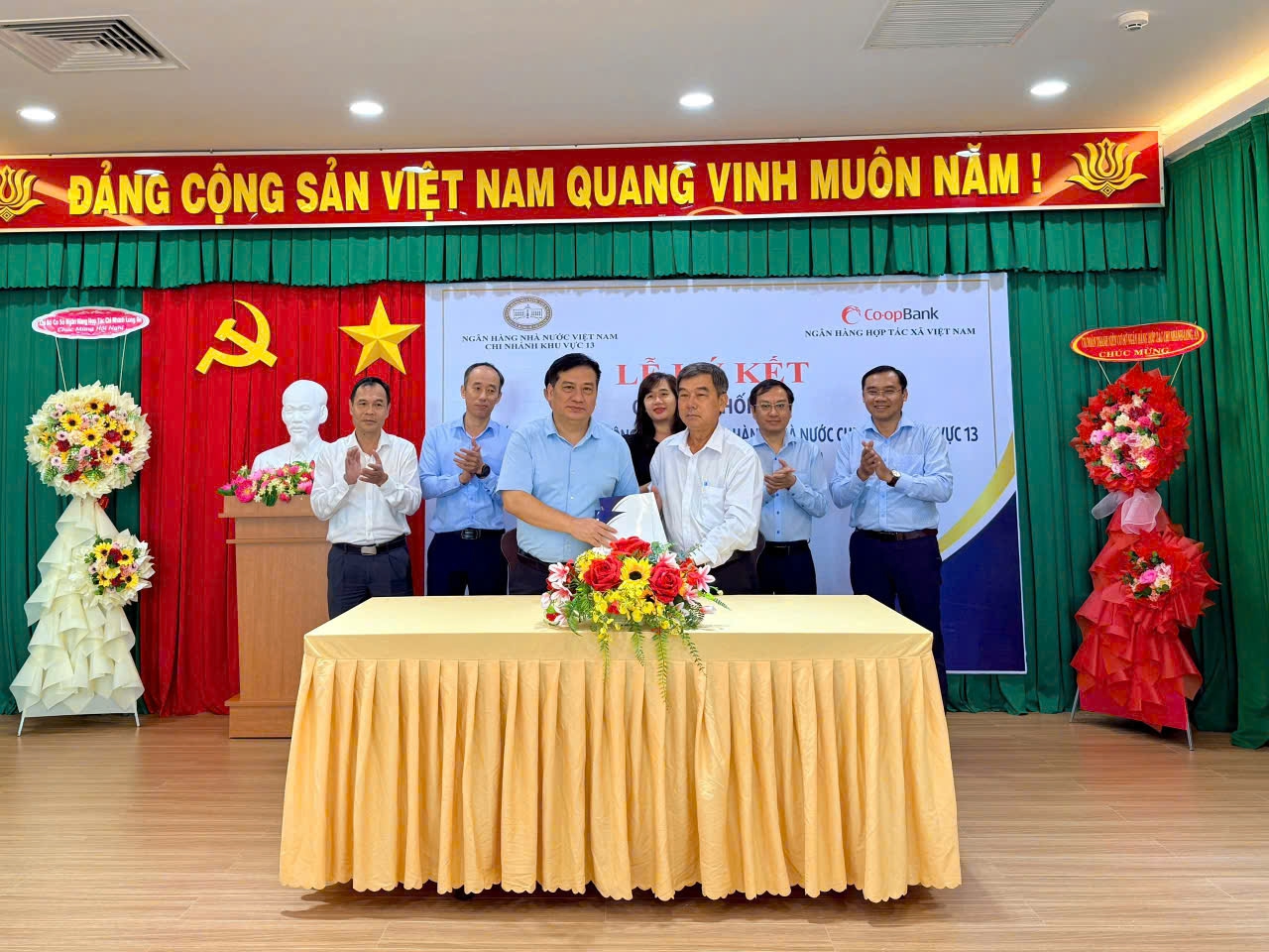 Toàn cảnh lễ ký kết Quy chế phối hợp cung cấp và trao đổi thông tin giữa NHNN khu vực 13 và Co-opBank
