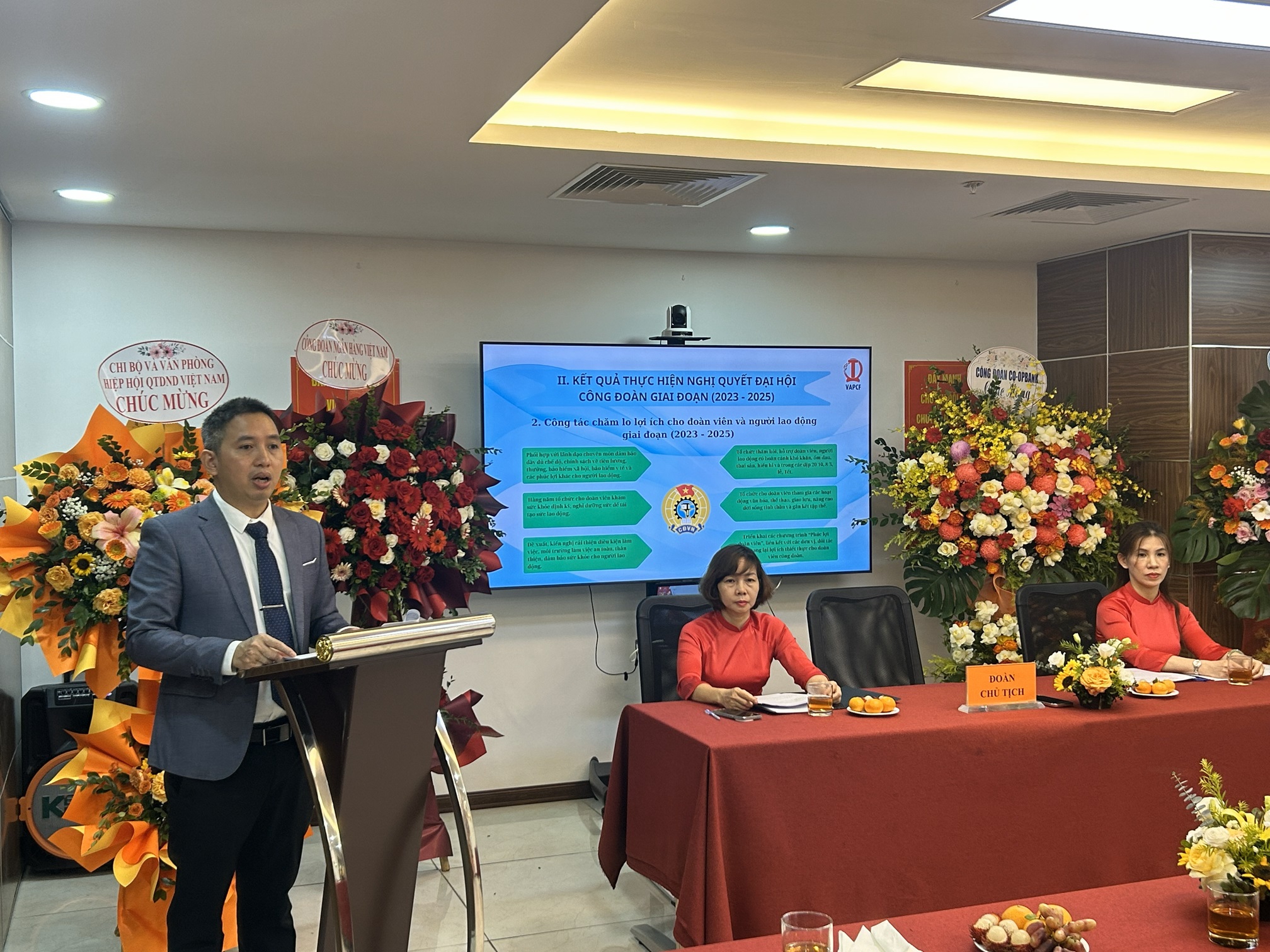 Ông Lê Văn Học - Chủ tịch Công đoàn cơ sở Hiệp hội thông qua báo cáo chính trị Đại hội Công đoàn cơ sở Hiệp hội nhiệm kỳ (2023-2028) và phương hướng nhiệm kỳ (2025-2030)