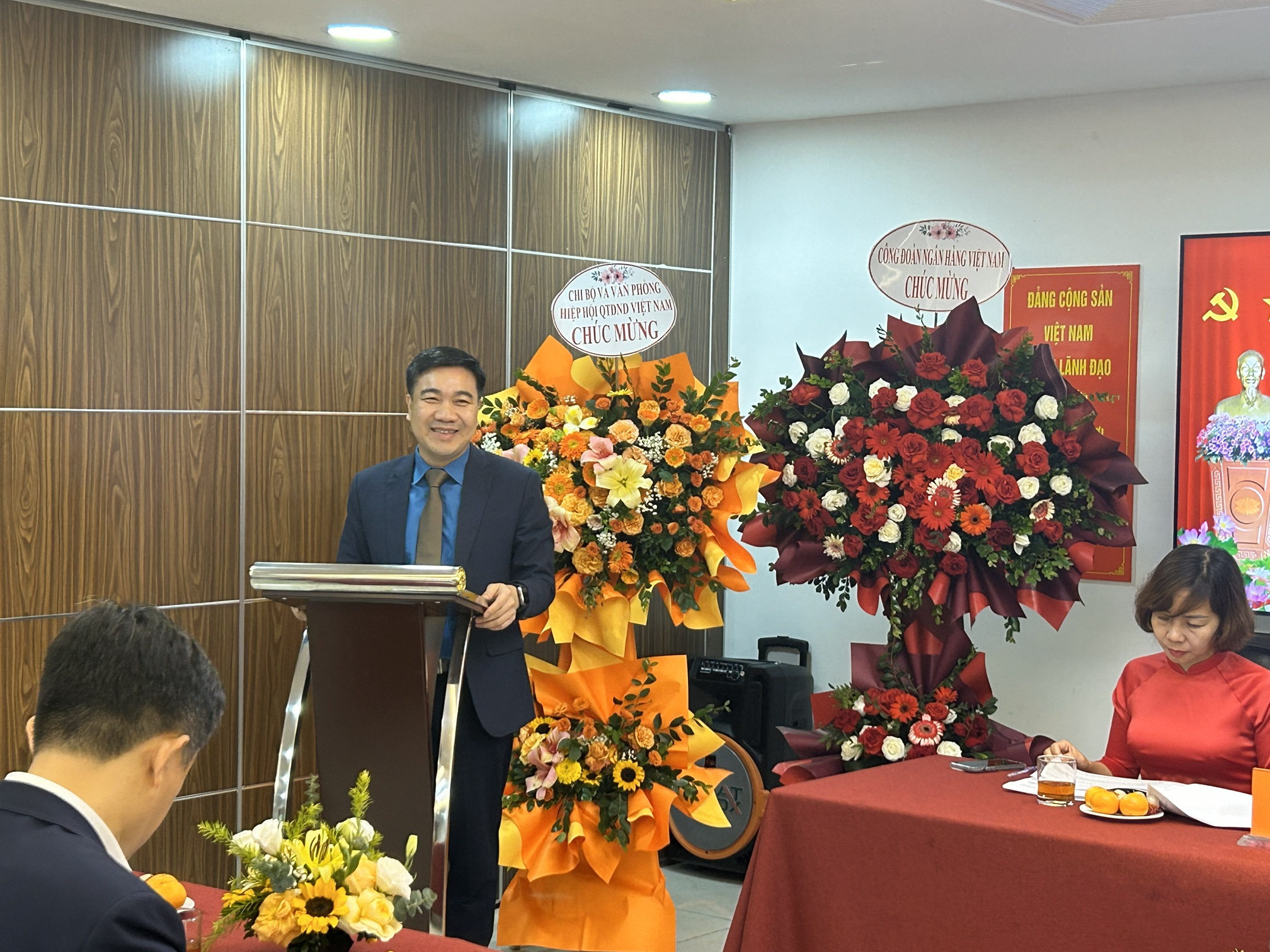 Về phía Ngân hàng Hợp tác xã, ông Hoàng Tuấn Long - Phó Ban Đảng Đoàn, Phó Chủ tịch Công đoàn bày tỏ niềm vinh dự khi được đồng hành cùng Công đoàn Hiệp hội trong các phong trào văn hóa thể thao dành cho hệ thống QTDND và Ngân hàng Hợp tác xã trong thời gian qua. Điều đó không chỉ thể hiện tinh thần đoàn kết trong hệ thống, thể hiện vai trò đầu mối gắn kết các hội viên mà còn thể hiện tinh thần Hiệp hội là mái nhà chung của hệ thống và Ngân hàng Hợp tác là ngân hàng của QTDND.