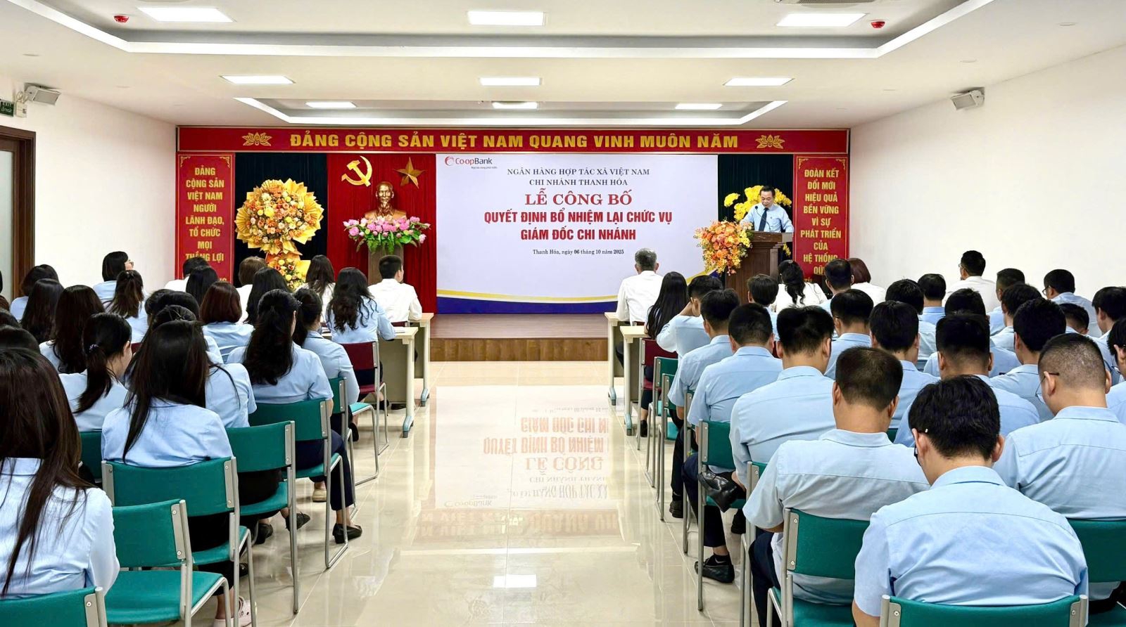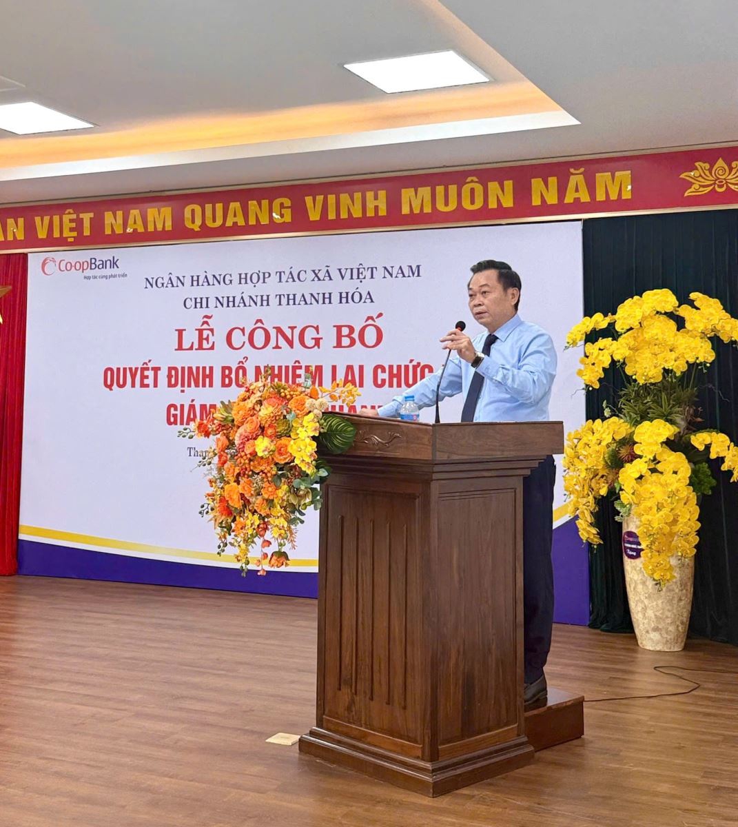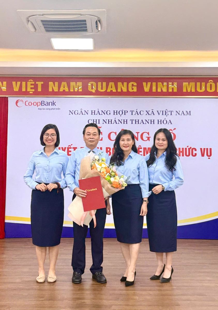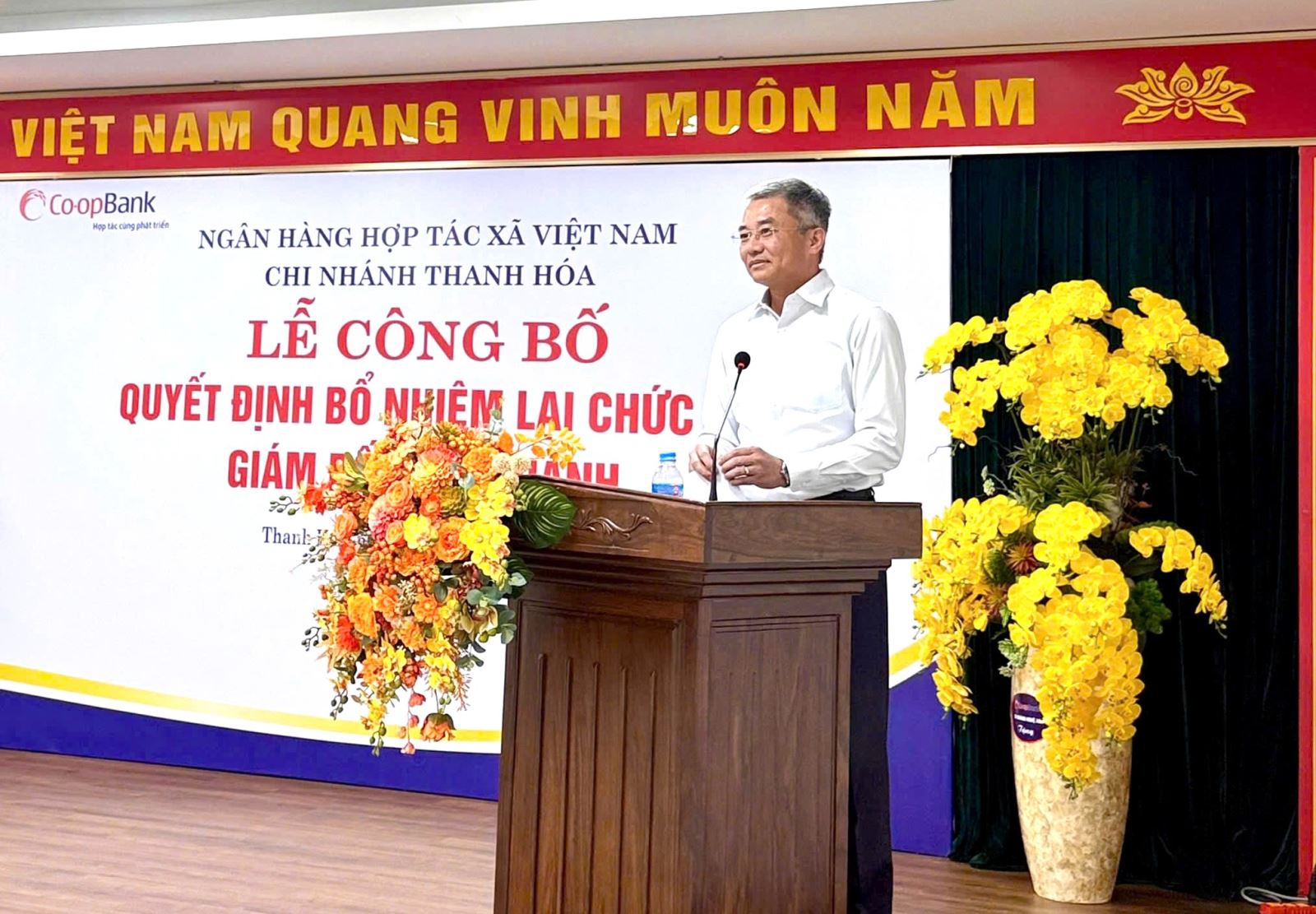 Cũng trong khuôn khổ buổi làm việc, Co-opBank đã tổ chức lễ Công bố Quyết định định bổ nhiệm lại ông Trịnh Huy Thành giữ chức vụ Giám đốc Co-opBank Chi nhánh Thanh Hóa.