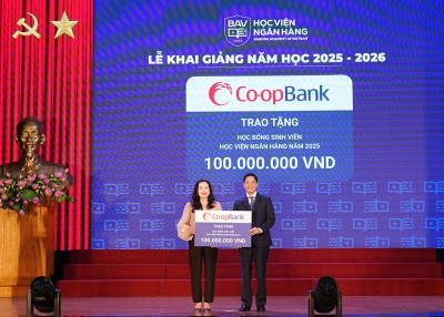 Sáng ngày 7/10/2025, tại Học viện Ngân hàng đã trang trọng diễn ra Lễ khai giảng năm học 2025 - 2026 và Khai mạc chuỗi sự kiện Chào tân sinh viên năm 2025 với chủ đề “Phát triển nguồn nhân lực thời đại AI”. Nhân dịp này, Ngân hàng Hợp tác xã Việt Nam (Co-opBank) đã trao học bổng trị giá 100 triệu đồng cho sinh viên Học viện Ngân hàng năm học 2025 - 2026, góp phần khích lệ tinh thần học tập, tiếp sức cho thế hệ tri thức trẻ ngành ngân hàng.