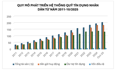 Năm 2025, hoạt động của hệ thống QTDND không nằm ngoài xu hướng chung của nền kinh tế và ngành Ngân hàng, nhưng chịu tác động với những đặc thù riêng. Bài viết tập trung làm rõ các đặc thù này thông qua việc đánh giá hoạt động của hệ thống QTDND năm 2025 về tăng trưởng quy mô, những khó khăn, thách thức phải đối mặt, đồng thời đề xuất một số khuyến nghị cho triển vọng phát triển năm 2026 và các năm tiếp theo.