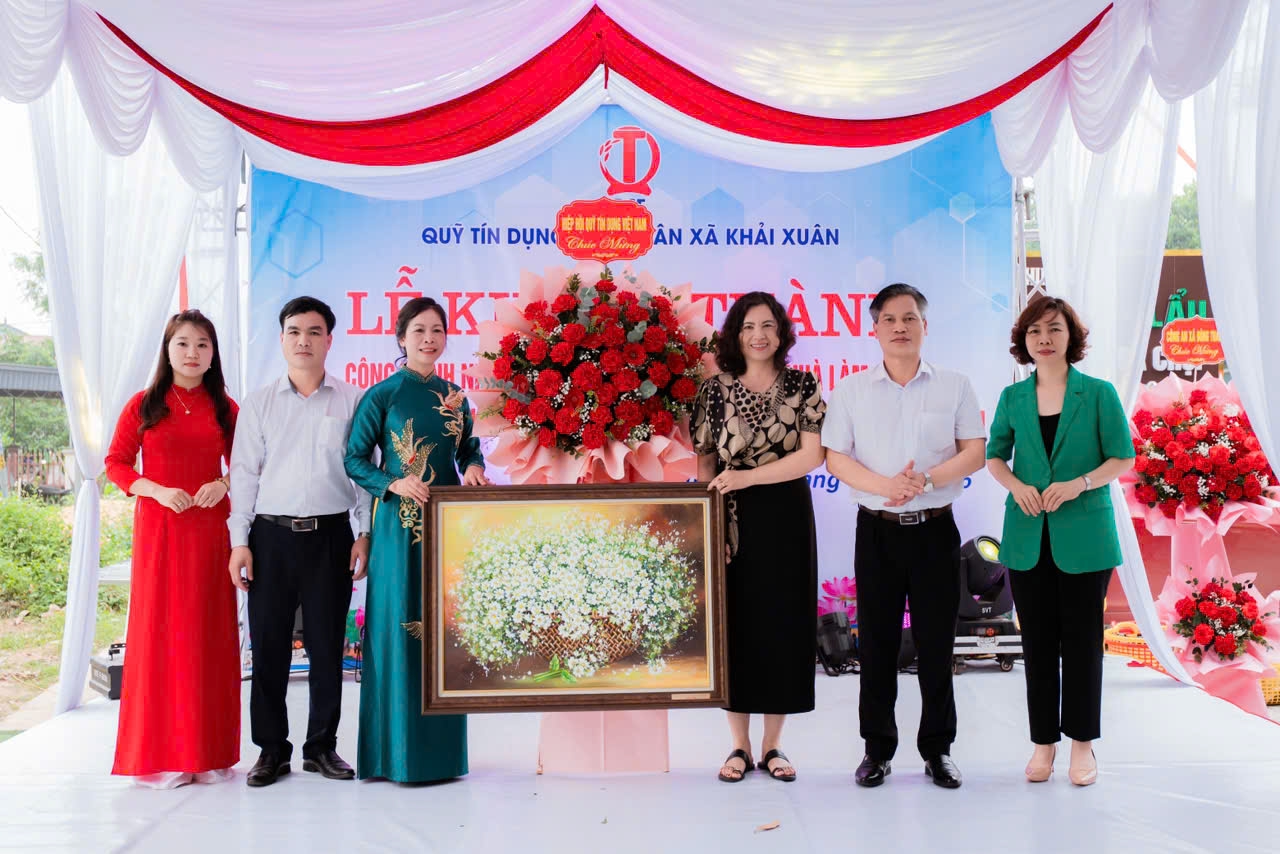 Ông Nguyễn Văn Minh - Ủy viên BCH Hiệp hội, Chủ tịch HĐQT QTDND Dữu Lâu, bà Nguyễn Thị Kim Thanh - Phó Tổng thư ký Hiệp hội trao quà lưu niệm cho Ban lãnh đạo QTDND Khải XuânBà Vi Thị Bạch Yến - Chủ tịch HĐQT QTDND xã Khải Xuân phát biểu tại Đại hội
