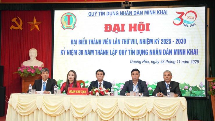 Ngày 28/11, Quỹ tín dụng nhân dân Minh Khai tổ chức Đại hội đại biểu thành viên lần thứ VIII, nhiệm kỳ 2025-2030 và kỷ niệm 30 năm thành lập Quỹ (1995-2025). Tham dự Đại hội có đại diện: Ông Nguyễn Văn Kiệt - Quyền Trưởng phòng quản lý, giám sát các TCTD phi ngân hàng, tổ chức TCVM và QTDND - Ngân hàng Nhà nước Chi nhánh Khu vực 1, Ông Nguyễn Đức Dũng - Tổng thư ký Hiệp hội QTDND Việt Nam; Ông Lê Văn Học - Giám đốc Công ty TNHH Phát triển và ứng dụng tin học VAPCF; đại diên Liên minh HTX thành phố Hà Nội.