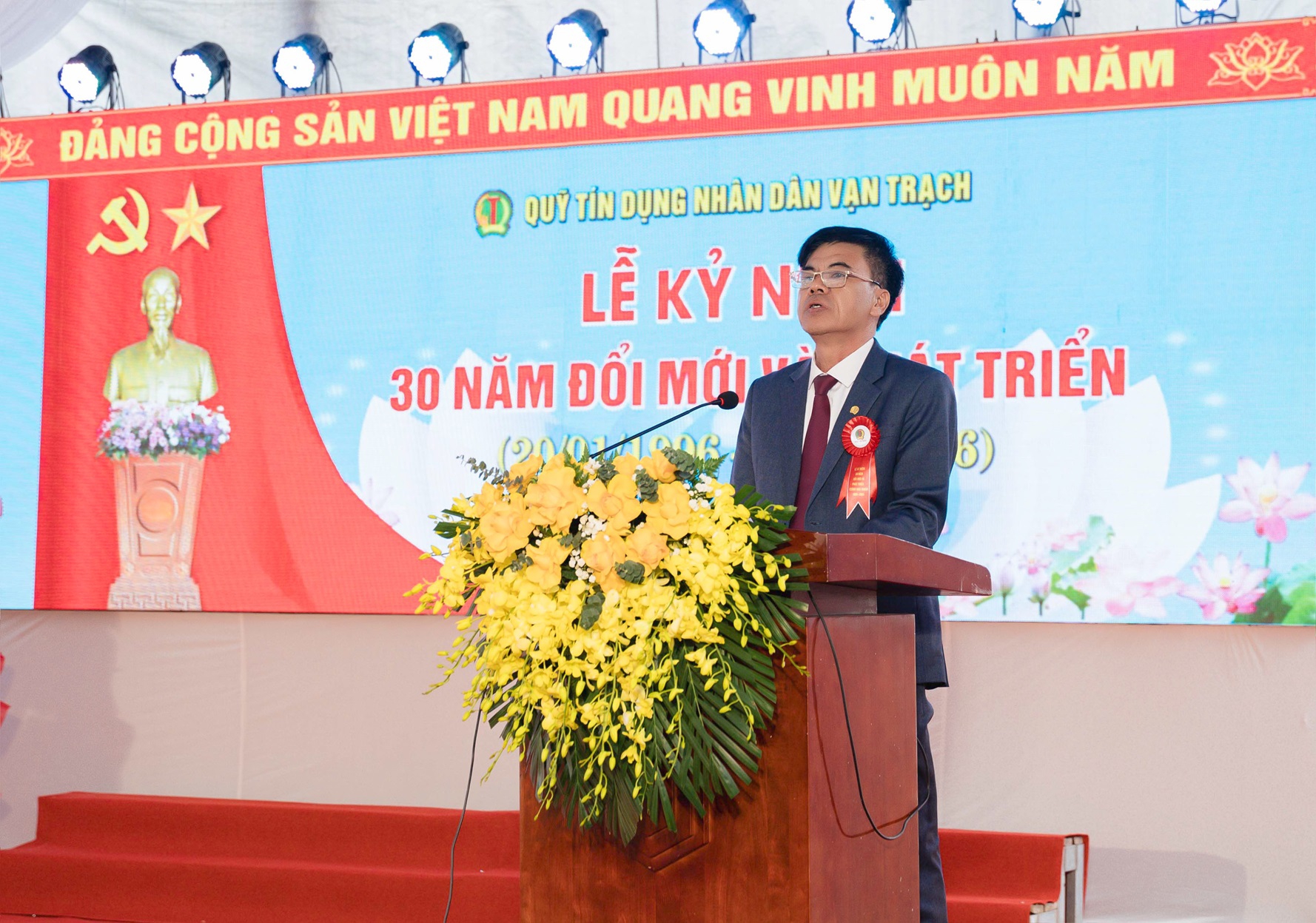 Phát biểu chỉ đạo tại buổi lễ, ông Lương Hải Lưu - Phó Giám đốc Ngân hàng Nhà nước chi nhánh khu vực 8 đã dành những lời nhận định đầy tâm huyết về vị thế của QTDND Vạn Trạch. Ông khẳng định: "QTDND Vạn Trạch không chỉ là đơn vị kinh doanh hiệu quả, đảm bảo các tỷ lệ an toàn vốn, mà còn là lá cờ đầu, là mô hình mẫu mực trong hệ thống QTDND trên địa bàn tỉnh Quảng Trị; là QTDND có quy mô hoạt động lớn và hiệu quả đứng thứ 2 trên toàn quốc."