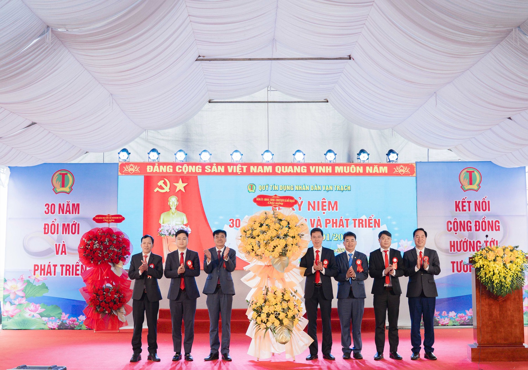 và các lãnh đạo & nhân viên QTDND Vạn Trạch qua các thời kỳ cùng gần 500 thành viên QTDND Vạn Trạch để cùng cảm nhận sự tái hiện hành trình 3 thập kỷ đầy tự hào.