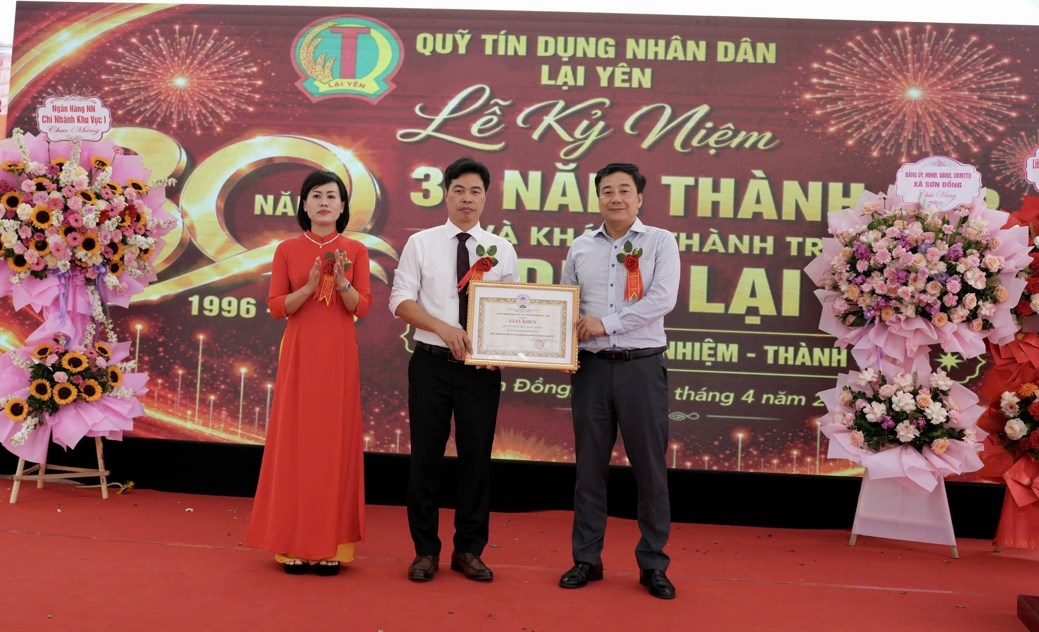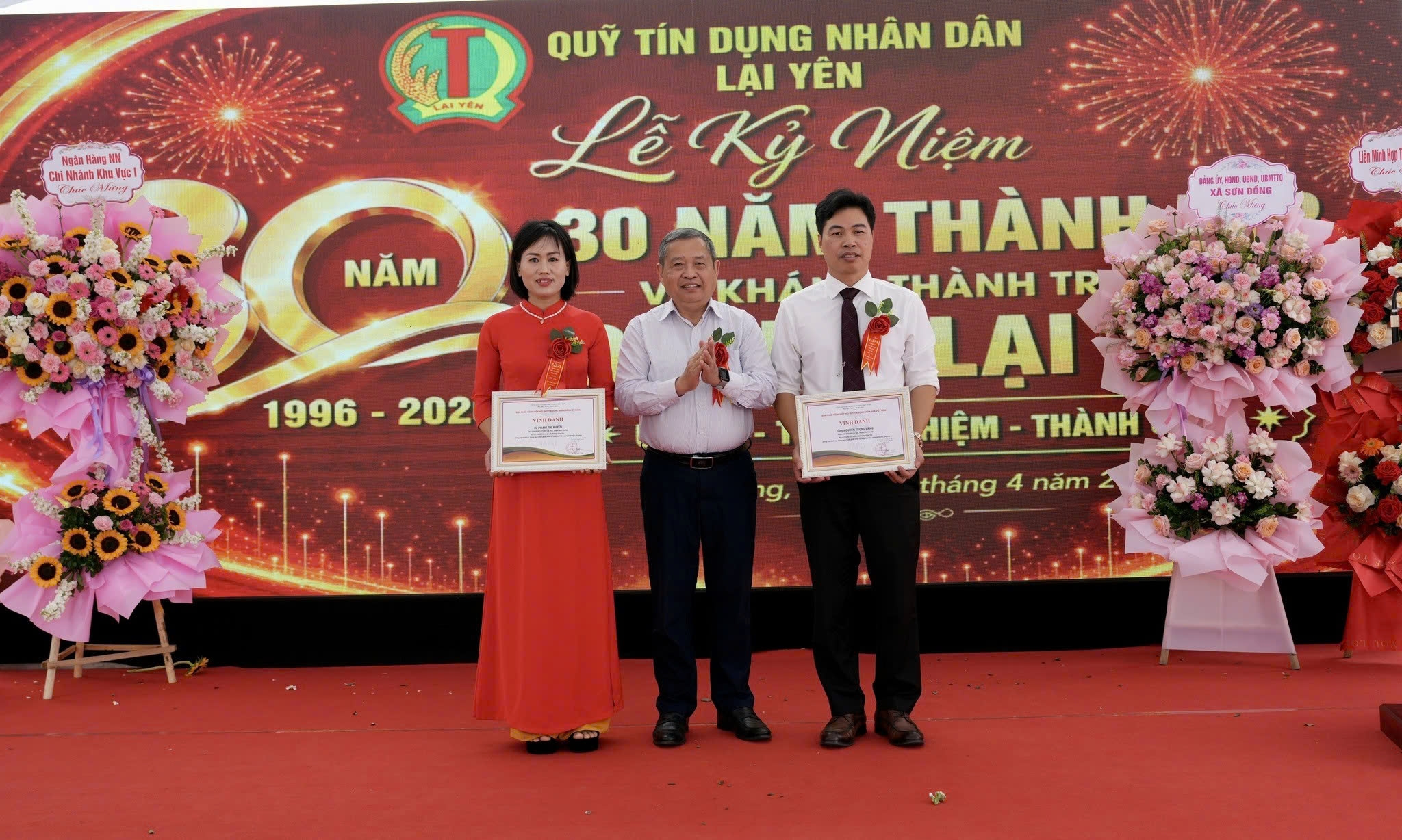 Phát biểu tại Lễ kỷ niệm 30 năm thành lập Quỹ, ông Trần Quốc Hùng - Phó Giám đốc Ngân hàng nhà nước Chi nhánh Khu vực 1 và đồng chí Nguyễn Đăng Sơn - Phó Bí thư Thường trực Đảng ủy xã ghi nhận và đánh giá cao những đóng góp tích cực của Quỹ tín dụng nhân dân Lại Yên đối với sự phát triển kinh tế - xã hội trên địa bàn Lại Yên nói riêng và khu vực nói chung.