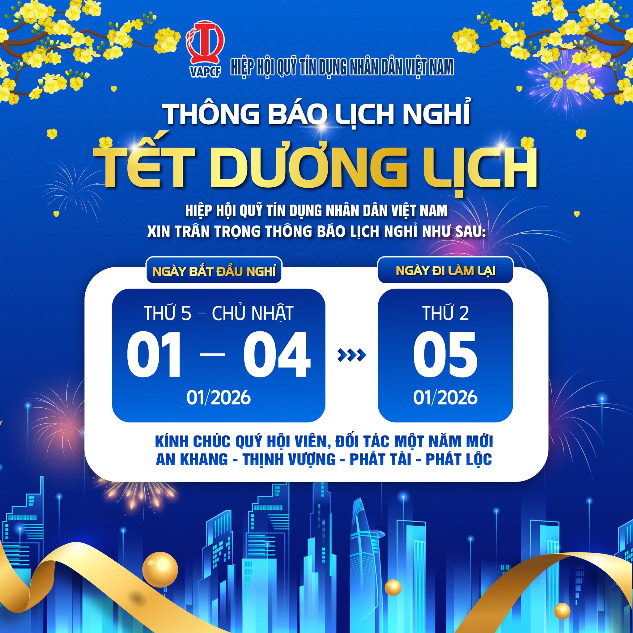 - Thời gian làm việc trở lại: Thứ Hai, ngày 5/1/2026.