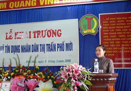 Phát biểu tại buổi lễ, các đồng chí lãnh đạo đại diện cho các đơn vị tới dự lễ khai trương đều có chung một quan điểm: trong hoạt động kinh doanh đặc biệt là kinh doanh tiền tệ, việc khai thác và huy động vốn tại chỗ là rất quan trọng và cần thiết, việc tiếp cận khách hàng và cho vay thành viên đòi hỏi QTDND phải có tinh thần thái độ phục vụ nhiệt tình, chu đáo, trung thực và đạt hiệu quả cao... việc bồi dưỡng và đào tạo cán bộ, định hướng kế hoạch kinh doanh, học hỏi kinh nghiệm của các QTDND đi trước, trau dồi phẩm chất đạo đức cán bộ là vấn đề QTDND Phố Mới cần quan tâm đúng mức.