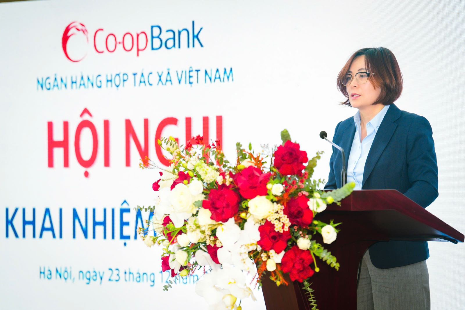 Thành viên Hội đồng quản trị kiêm Tổng giám đốc Co-opBank Phạm Thị Hồng Minh phát biểu tại Hội nghị