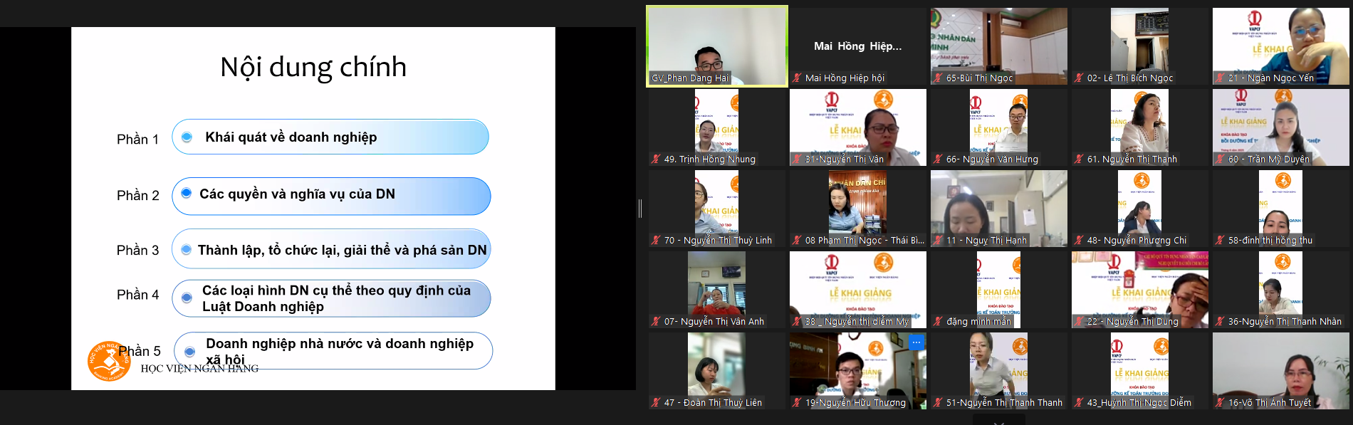 Kết thúc buổi lễ, các học viên đã tập trung trao đổi chuyên đề đầu tiên chuyên đề Pháp luận liên quan đến doanh nghiệp cùng TS. Phan Đăng Hải Thảo - Khoa Luật - Học viện Ngân hàng.