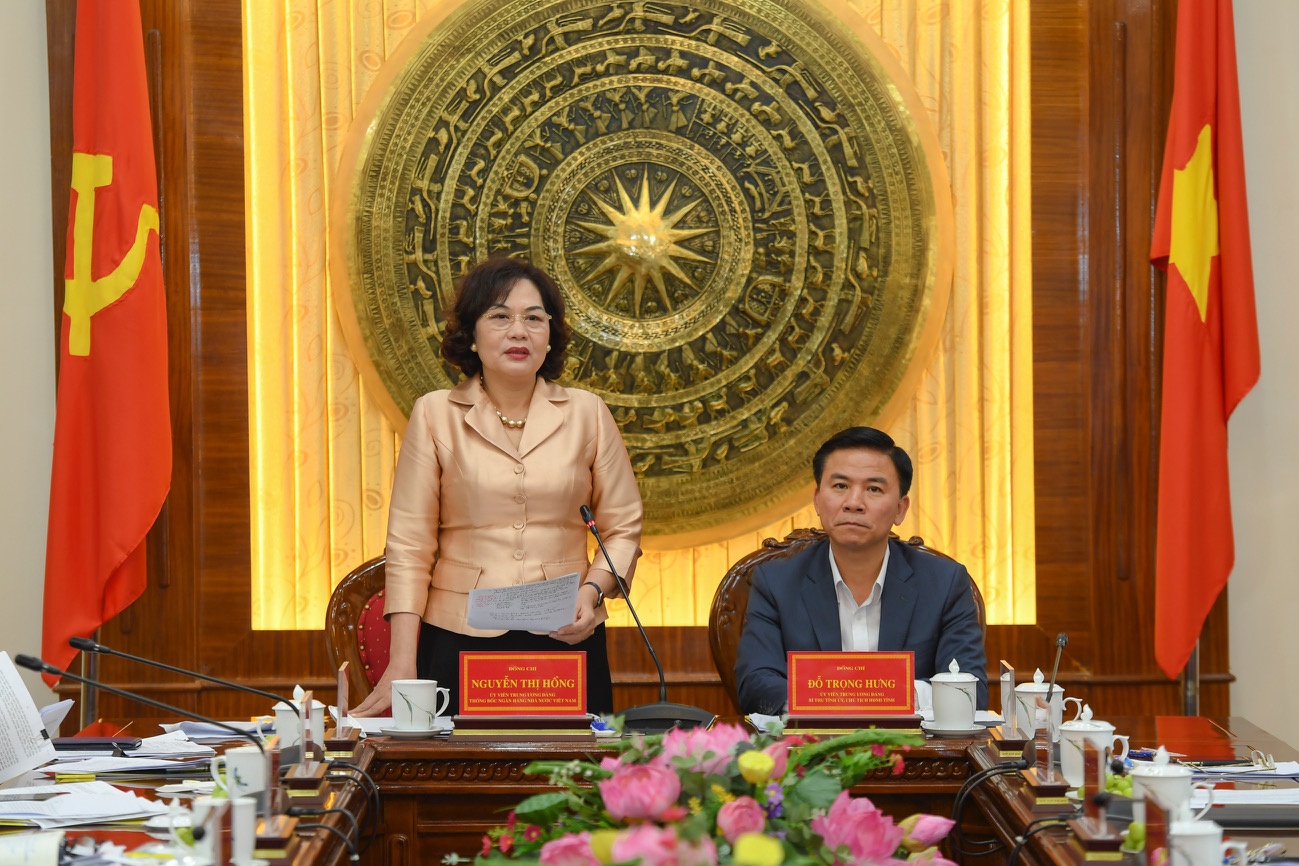 Phát biểu kết luận buổi làm việc, Thống đốc NHNN Nguyễn Thị Hồng bày tỏ cảm ơn Ban lãnh đạo tỉnh đã quan tâm tới hoạt động ngân hàng trên địa bàn trong những năm qua.