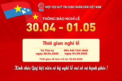 Hiệp hội QTDND Việt Nam thông báo lịch nghỉ lễ ngày Giải phóng Miền Nam và ngày Quốc tế lao động