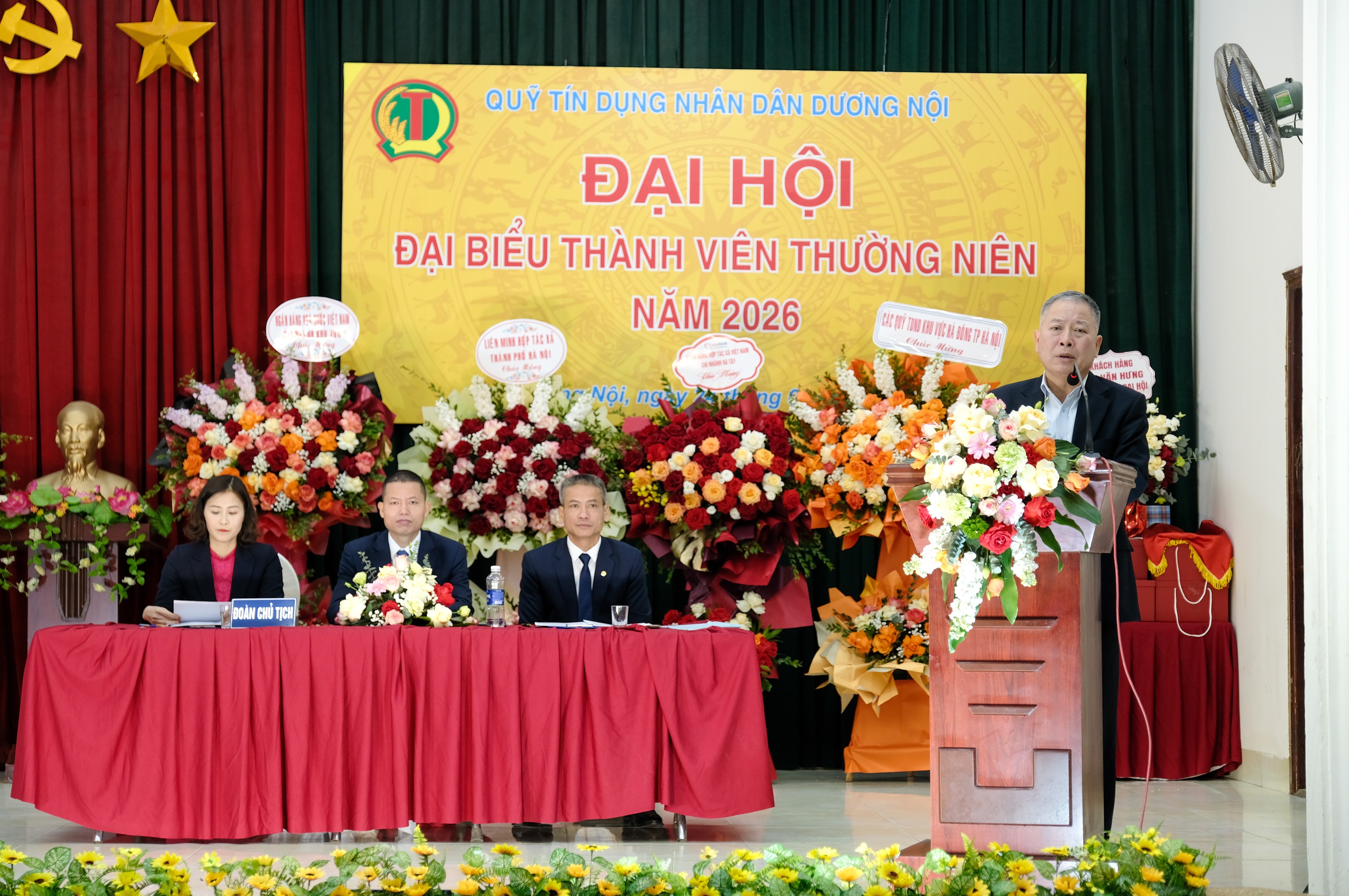 Đại hội đã được nghe ông Dương Ngọc Cúc - Giám đốc QTDND Dương Nội báo cáo tình hình hoạt động năm 2025 của Quỹ như sau: Duy trì tỷ lệ nợ xấu ở mức 0%, toàn bộ dư nợ thuộc nhóm 1; Vốn tự có đạt 47,003 tỷ đồng (vượt 4,5% kế hoạch), Lợi nhuận sau thuế đạt 4,345 tỷ đồng, tăng trưởng 3,4% so với năm trước; khẳng định năng lực tài chính vững vàng; Tỷ lệ an toàn vốn (CAR) đạt mức 19,88%, cao hơn gấp 2,12 lần so với yêu cầu tối thiểu.