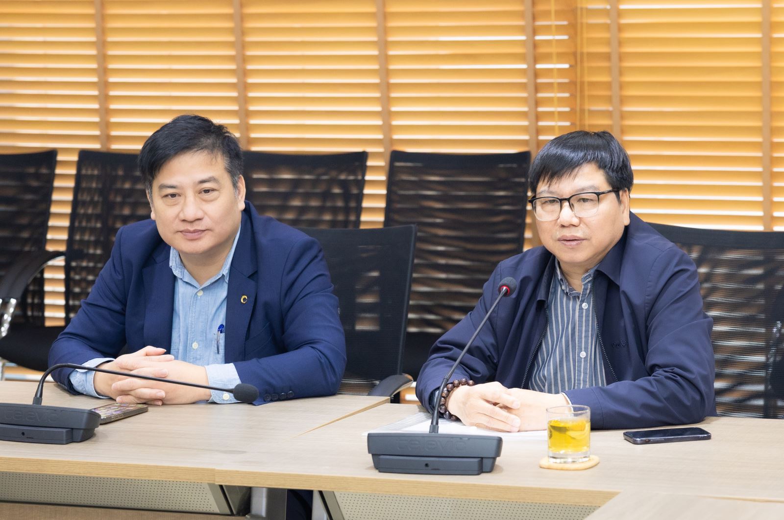 Ông Nguyễn Thạc Tâm - Phó Tổng Giám đốc Co-opBank; ông Trần Quang Yên - Phó Trưởng khoa Hệ thống thông tin quản lý - Đại học Kinh tế quốc dân tại buổi Toạ đàm